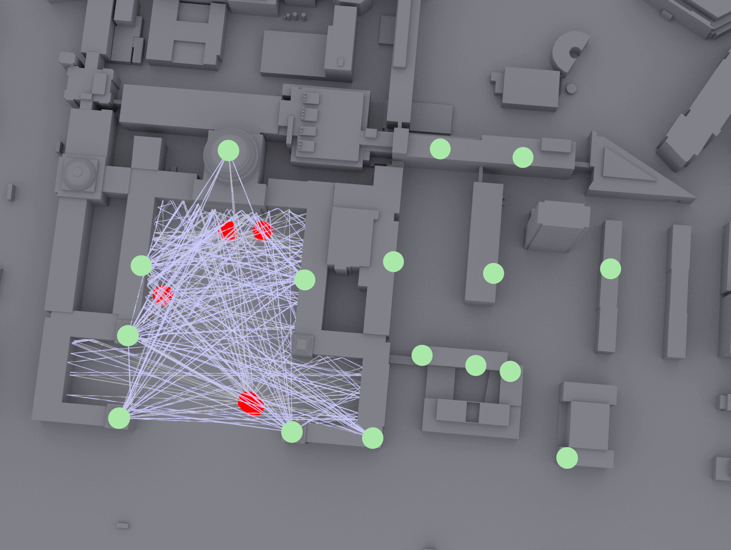 The main challenge of positioning is achieving high accuracy and reliability in environments with significant multipath and blockages (e.g., street canyons, indoors). A promising strategy for accurate positioning is to address this challenge is to use an AI-based approach. In WINS Lab, we emulate the multi-TRP systems and generate training dataset on 40,635 square meters of MIT’s campus in Cambridge, Massachusetts, using NVIDIA Sionna software and A100 GPUs (see figure below).