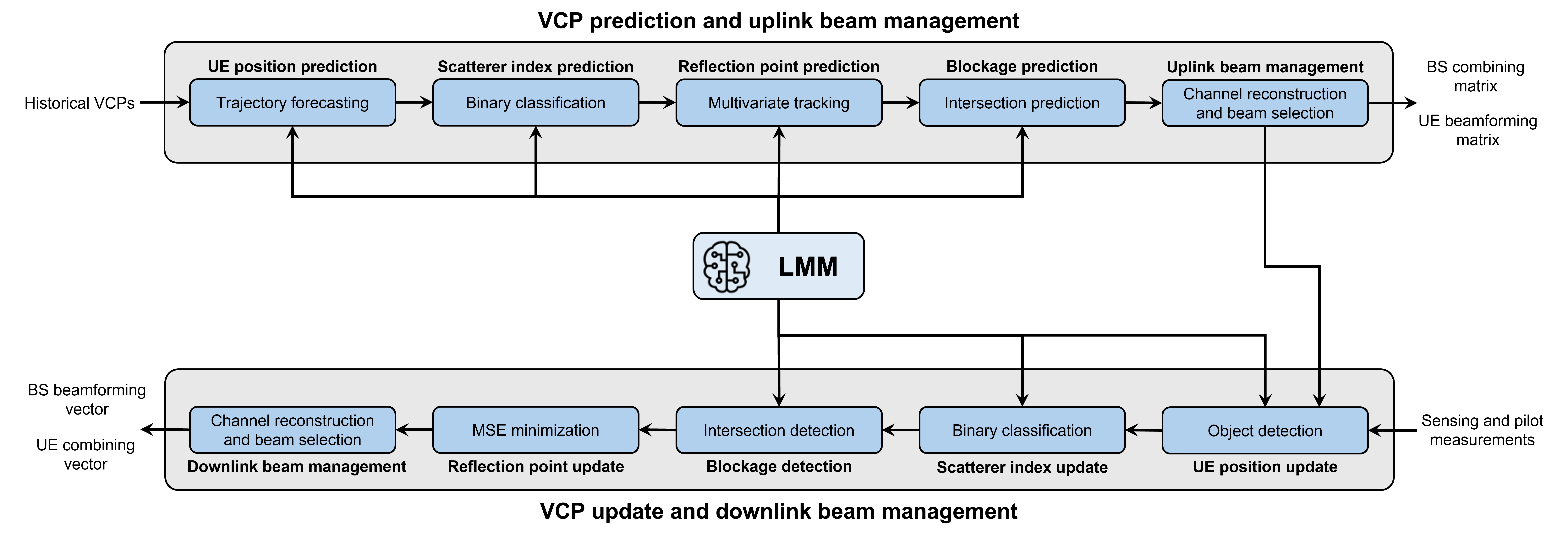 Situational awareness naturally extends to beam management [2]. By tracking VCPs over time with a prediction-and-update cadence, the system forecasts trajectories, identifies which objects are currently reflecting, predicts where reflections will land next, and steers training and downlink beams before the scene changes. This directly addresses piecewise continuity and avoids focusing only on the line-of-sight (LOS) path by also accounting for non-line-of-sight (NLOS) components.